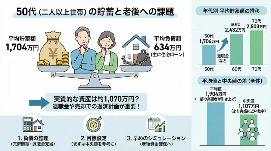 50代の平均貯蓄は1,705万円(二人以上の世帯)