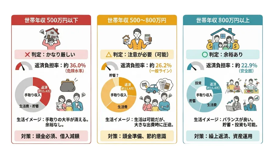 年収ごとの返済負担率や生活イメージを比較し、無理のない借入額を検討しましょう。