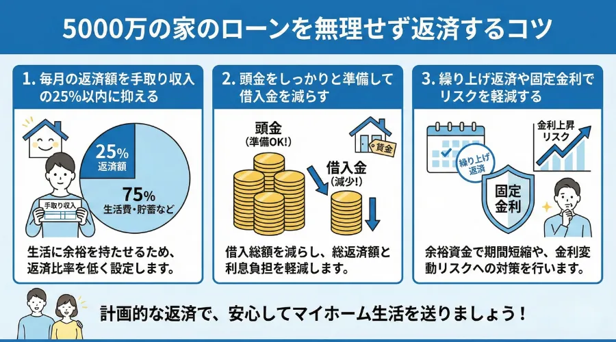 ここでは、5000万円のローンを計画的に返済するための具体的なコツを紹介します。